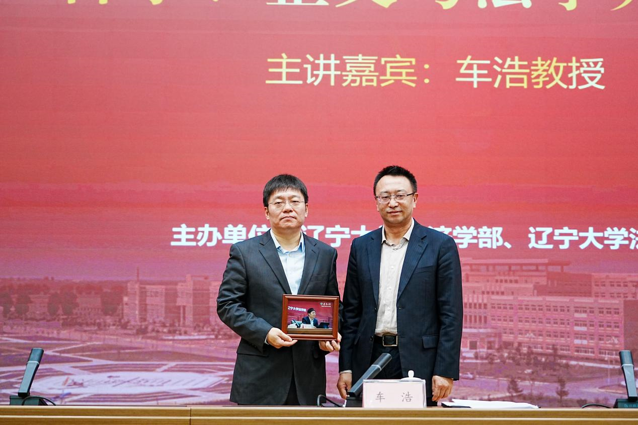 11月28日下午,辽宁大学宋则行名家大讲堂(第二十一讲)在蒲河校区纪检监察大楼报告厅举行。北京大学法学院副院长车浩教授应邀作了题为《科学、正义与法学方法论》的学术报告。辽宁大学党委副书记、校长余淼杰教授出席报告会并致欢迎辞。报告会由辽宁大学法学院院长闫海教授主持。