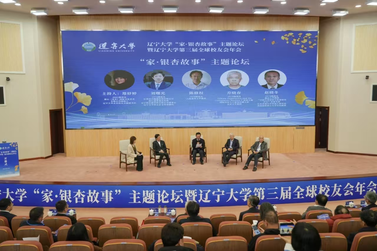 “家・银杏故事”主题论坛环节亮点纷呈,四位1978级校友受邀分享。江苏宜兴德融科技有限公司执行董事兼总经理、辽宁科京新材料有限公司董事长、辽宁大学校友总会荣誉顾问刘曙光,大连海事大学教授陈修权,《中国人口与发展研究》杂志主编、国际历史人口委员会副主席、北京大学教授乔晓春,燕山大学教授、“中国大学评价与发展研究中心”首席专家、日本名城大学外国人研究员,美国加州州立大学访问教授赵晓冬应邀参会。论坛由我校校友、辽宁大学北京校友会副秘书长、橙心(北京)国际文化艺术有限公司创始人郑妤婷主持。论坛中,他们分享了与银杏相关的青春记忆,更结合个人经历与时代发展,为这段校园记忆赋予新的解读与延伸,引发在场师生和校友的情感共鸣。
