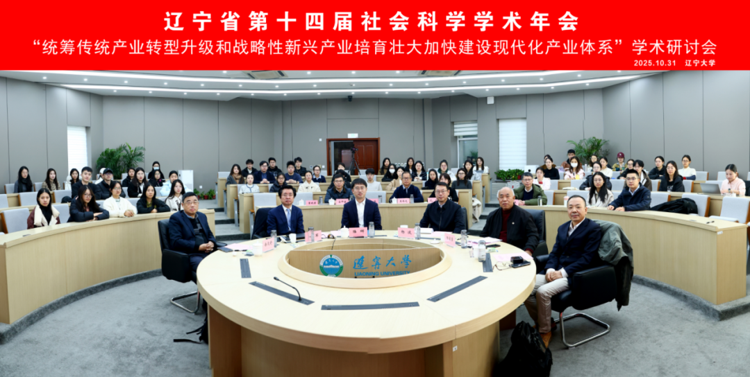 10月31日,由辽宁省社会科学界联合会、辽宁大学联合主办,辽宁大学经济学部、沈阳市东北亚国际化中心城市研究院联合承办的辽宁省第十四届社会科学学术年会的第三场活动——“统筹传统产业转型升级和战略性新兴产业培育壮大 加快建设现代化产业体系”学术研讨会在辽宁大学蒲河校区举行。辽宁大学党委副书记、校长余淼杰在线作主旨报告,辽宁大学党委常委、副校长陆辉,辽宁省社会科学界联合会副主席杨波分别致辞。