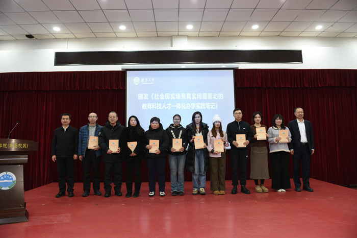 会上,潘一山和张洪新为武圣校区师生代表颁发了《社会现实场景真实问题驱动的教育科技人才一体化办学实践笔记》。