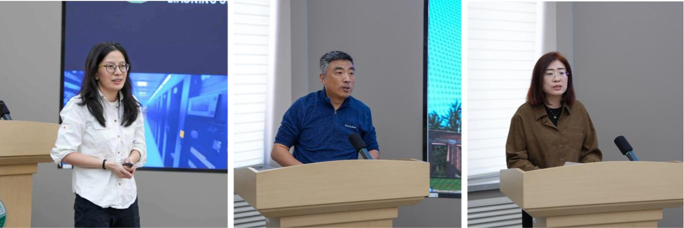 会上,机器学习与大数据算法研究院院长王丹丹、信息化中心主任李晓光、网络与信息安全学院副院长王妍分别围绕研究院平台建设、学校信息化整体规划、国内高校人工智能赋能教育先进经验等方面作专题汇报,分享实践成果、交流发展思路。